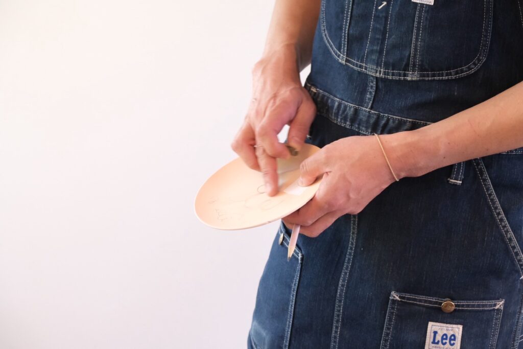 有田焼のお皿に筆や、陶芸用パステルで絵をつける体験です^^